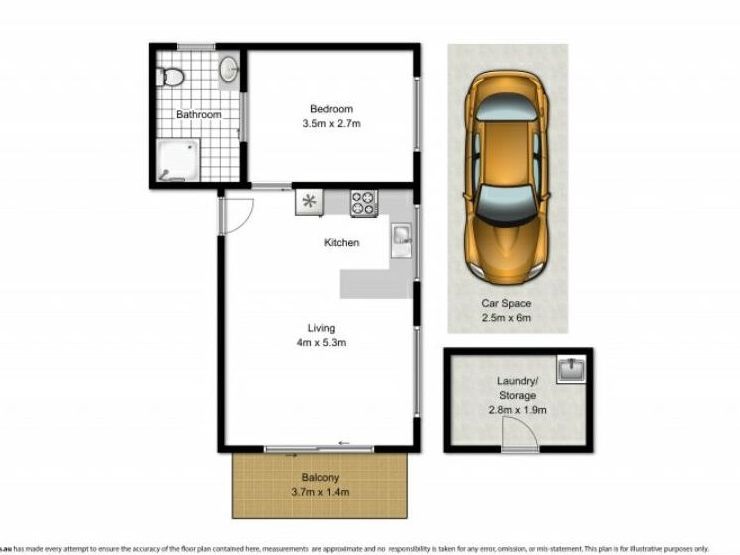 – Car space, external laundry room/storage, modern bathroom