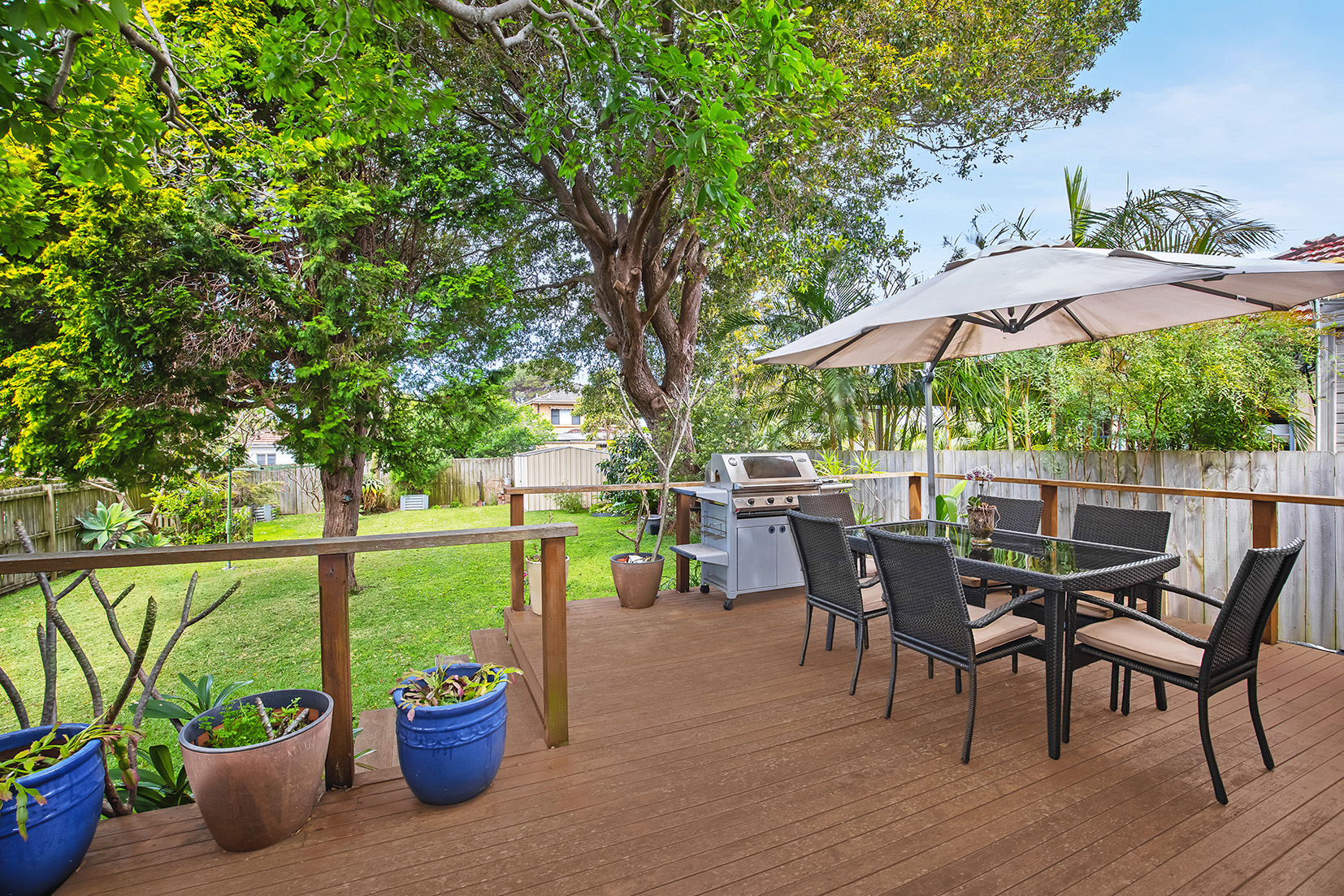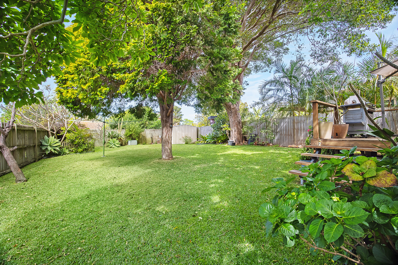 – Deep child-friendly rear yard with easy-care established gardens