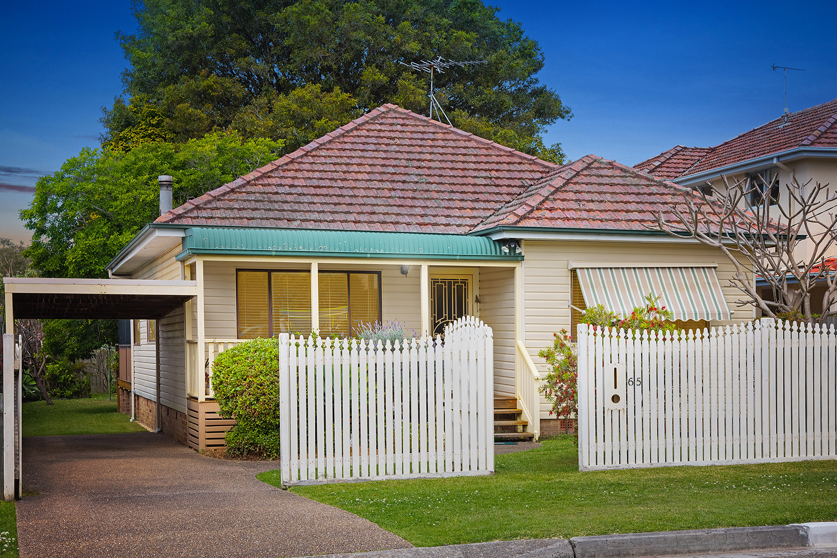 – Undercover carport, charming façade, covered front porch