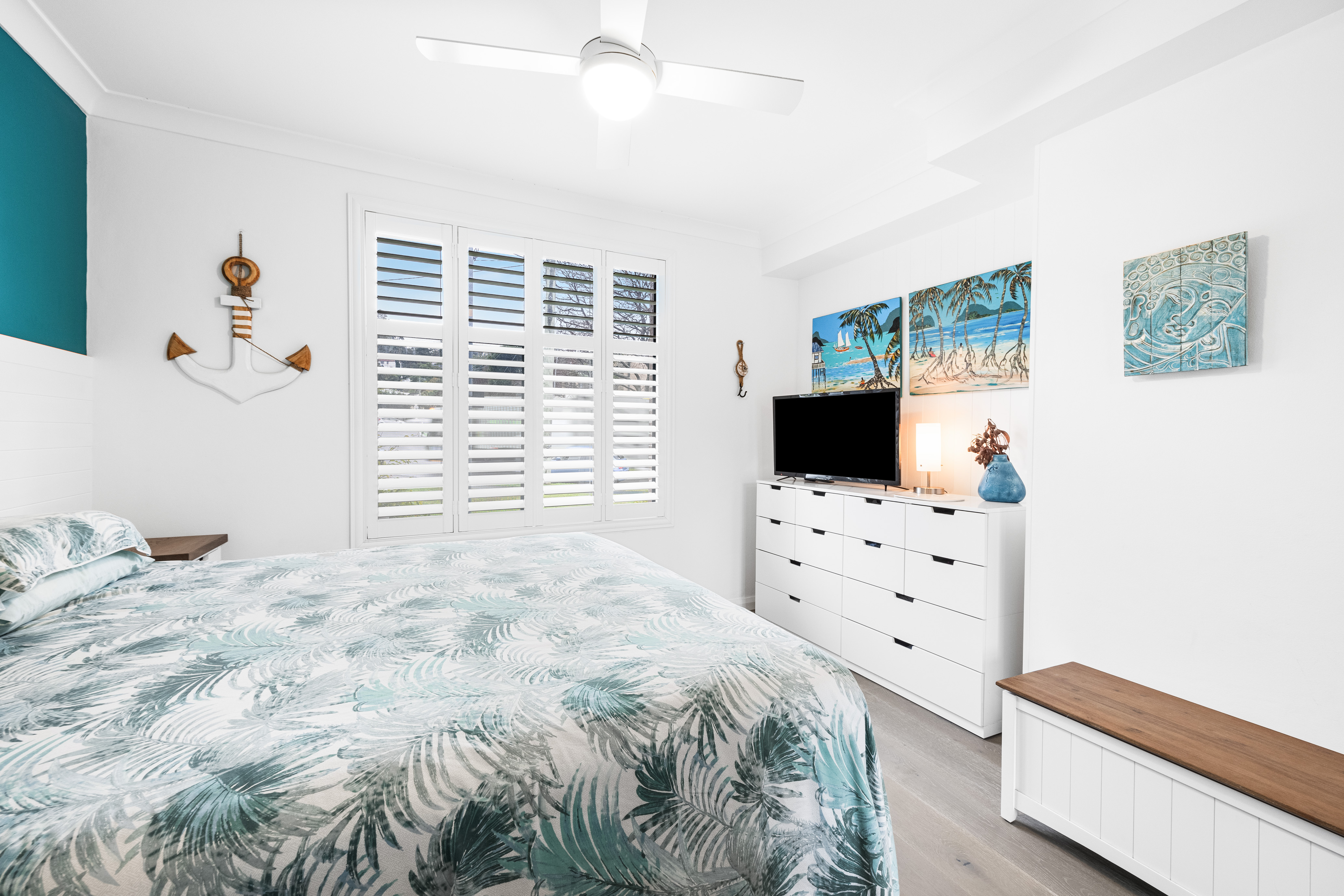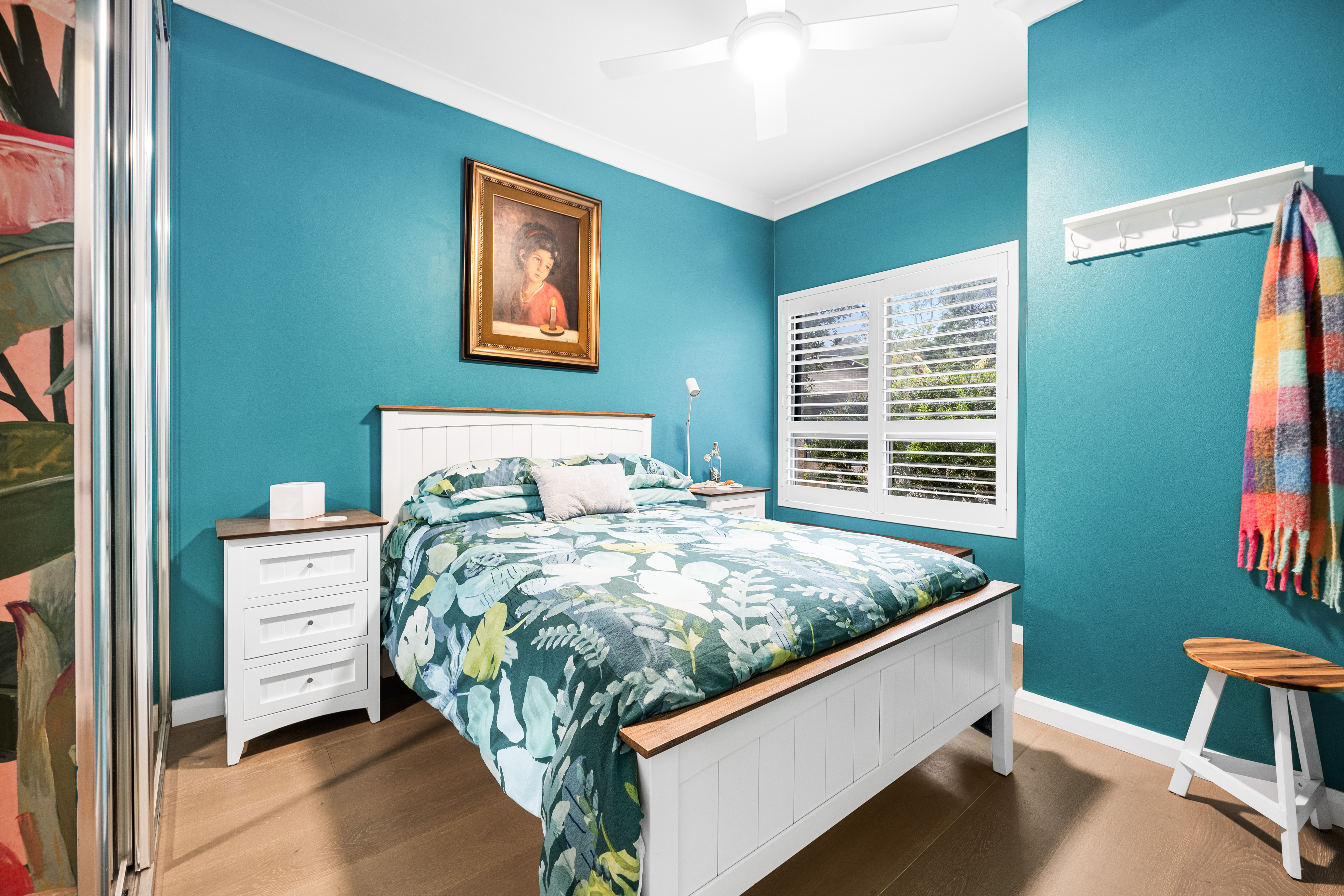 – Generously sized master bedroom, featuring built-in wardrobes, a three-speed ceiling fan with integrated light and a wider doorway for easier access. Additionally vee grove paneling across two walls and a fixed bed head with reading lights add a touch of elegance.