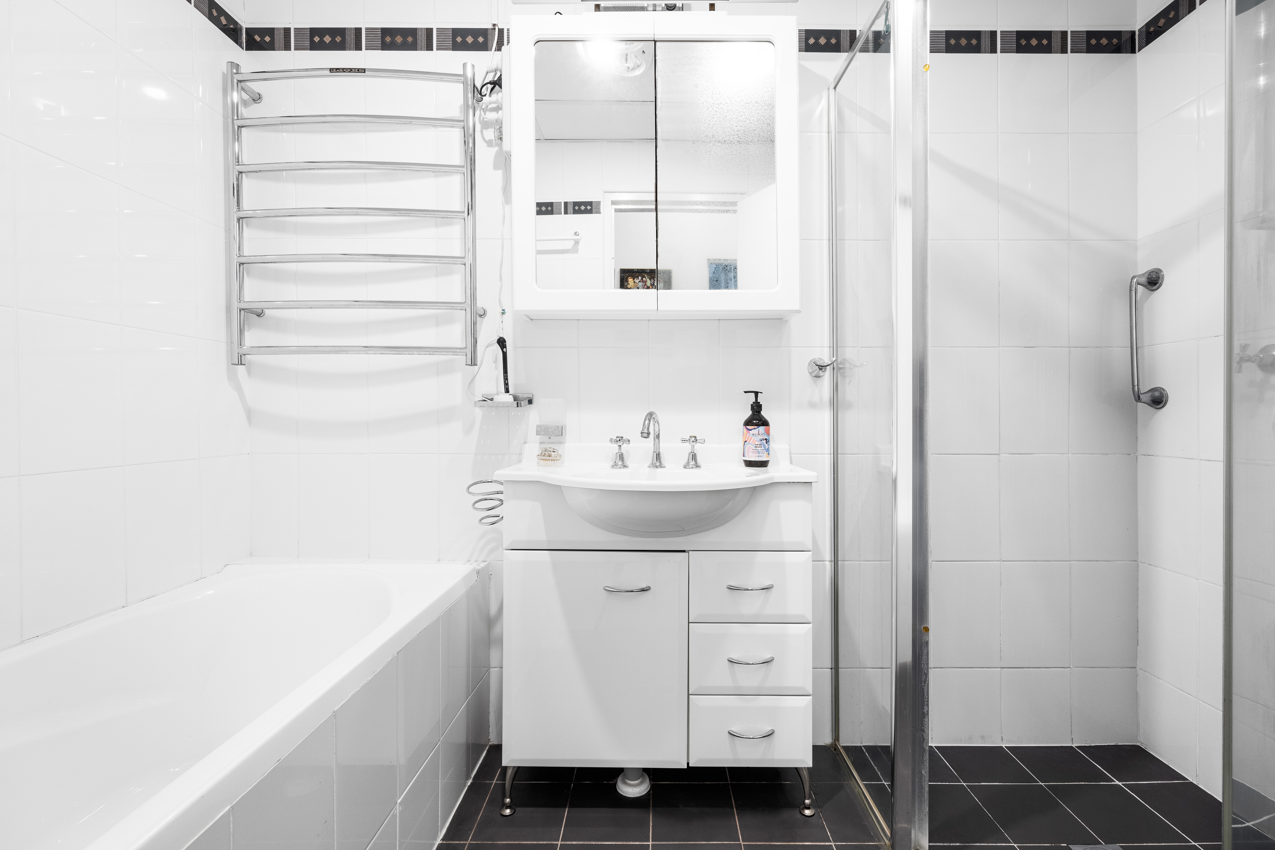 – Ultra-chic bathroom includes a separate shower and bath, an extra-large mirrored shaving cabinet with an additional power points, a seven-run heated towel rack, and twin ceiling heat lamps.