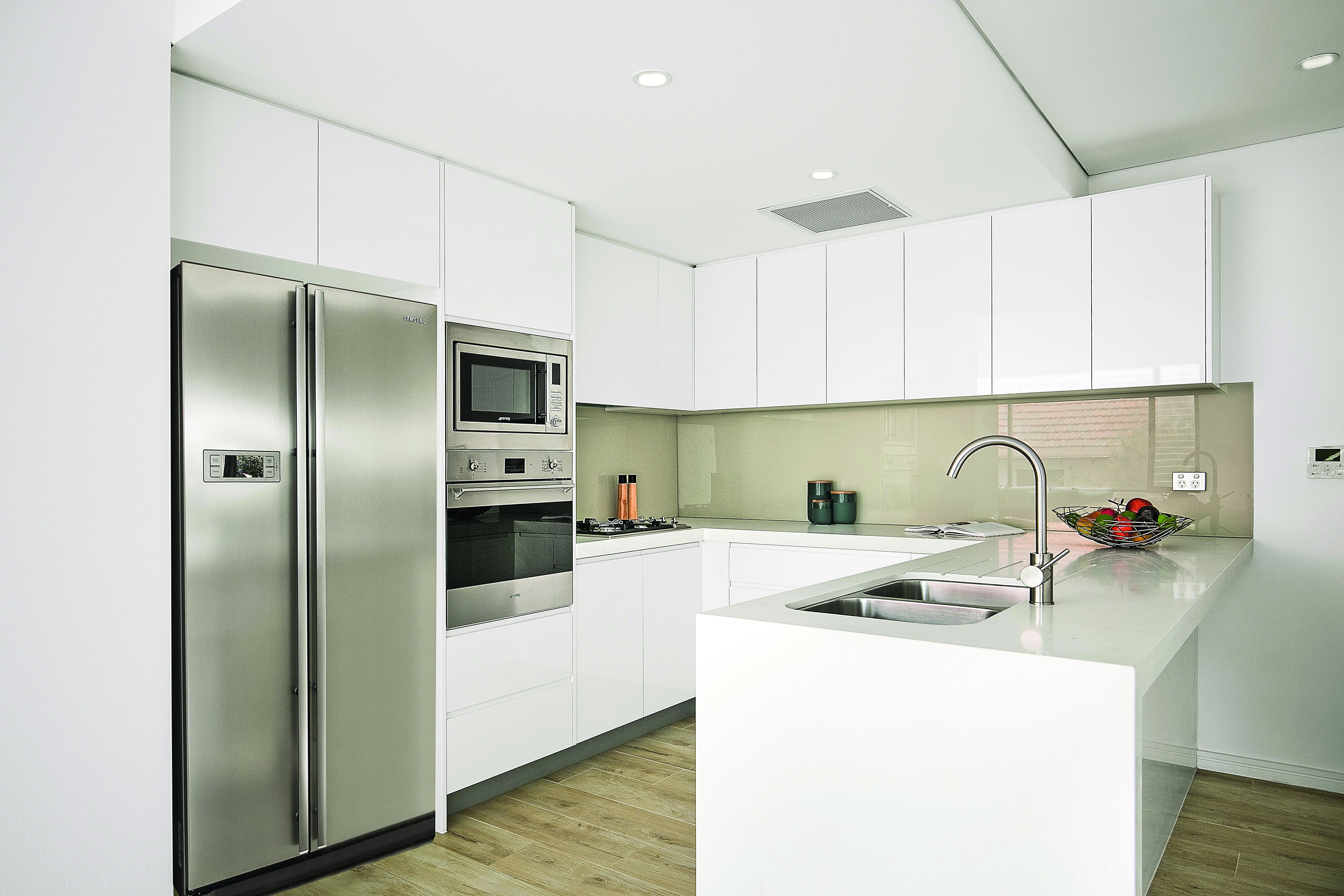 -U-shaped kitchen with thick stone benches, Smeg integrated gas appliances