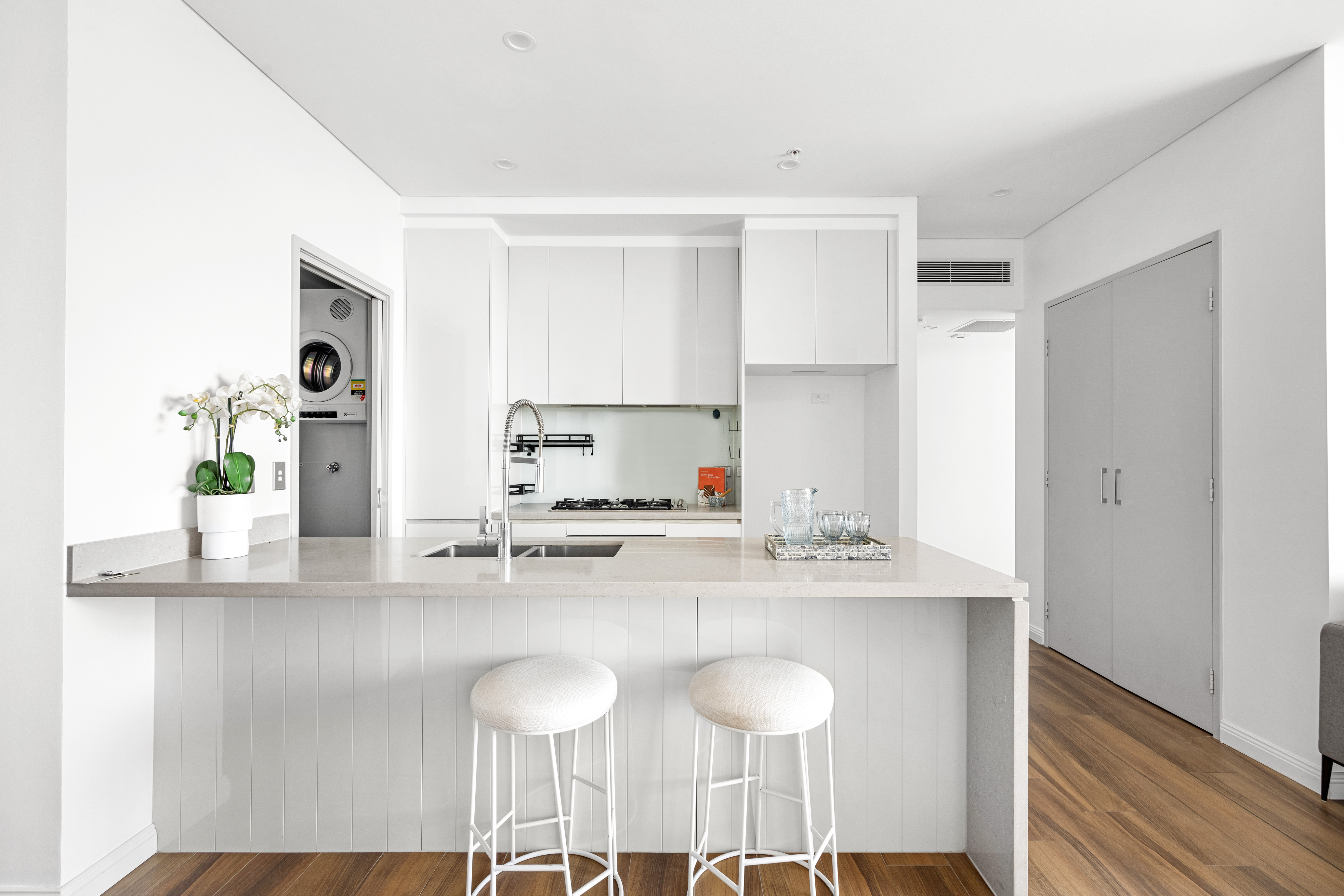 cooktop/oven, and an integrated Bosch dishwasher