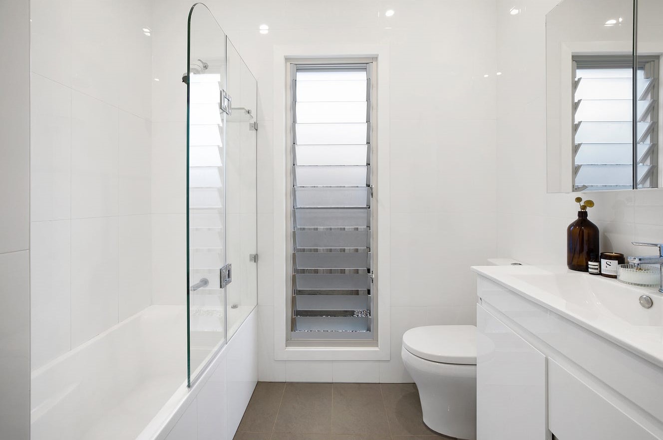– Modern bathroom with bathtub/shower, vanity storage and contemporary finishes