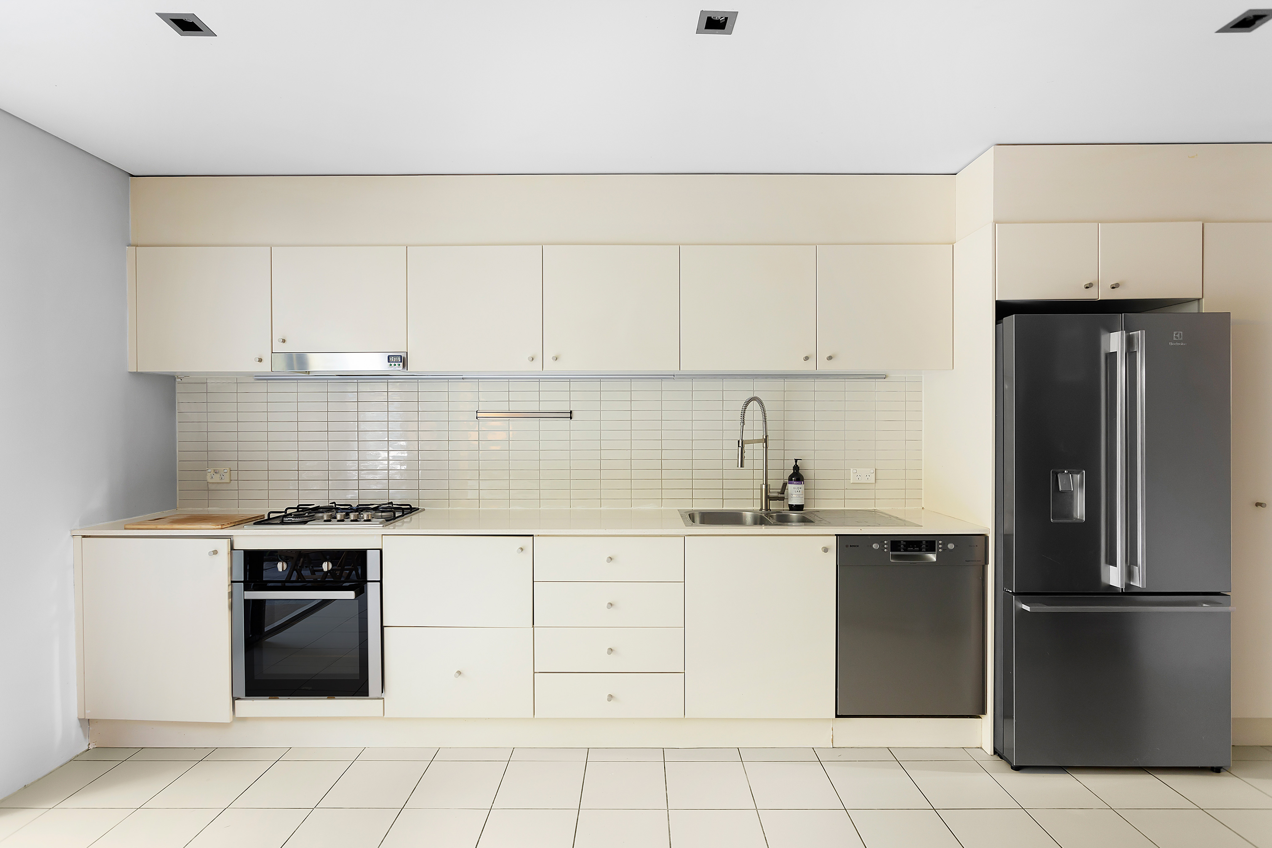 – Streamlined gas kitchen, stone benchtops and Bosch dishwasher