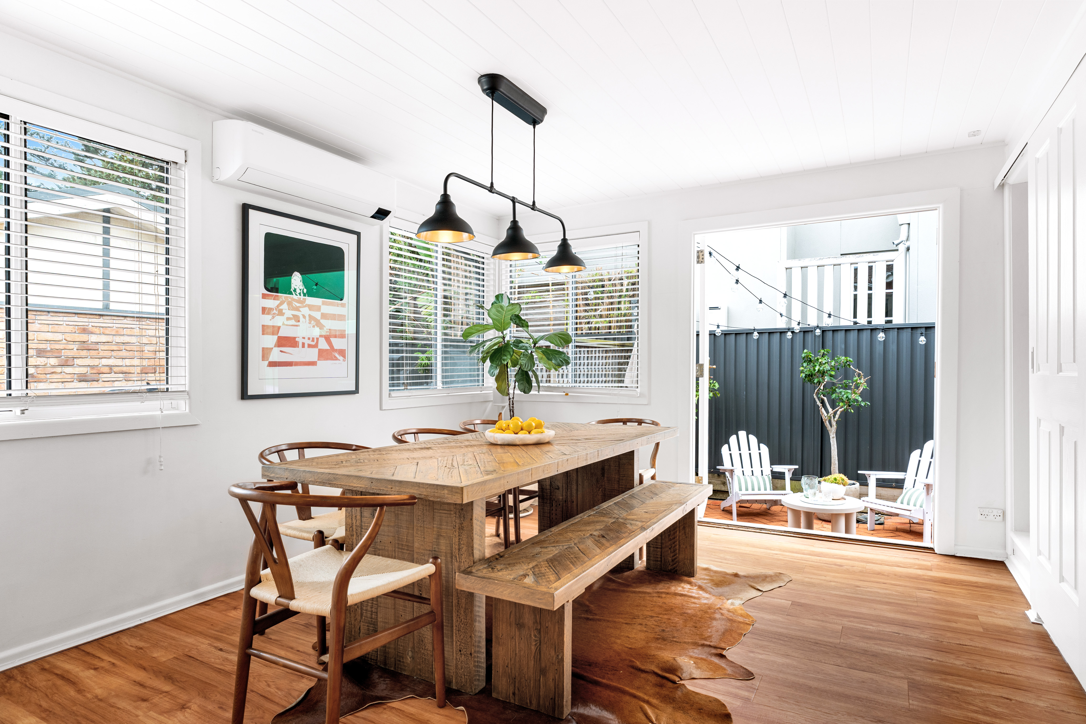 • High ceilings, picture rails, timber flooring and new air conditioning