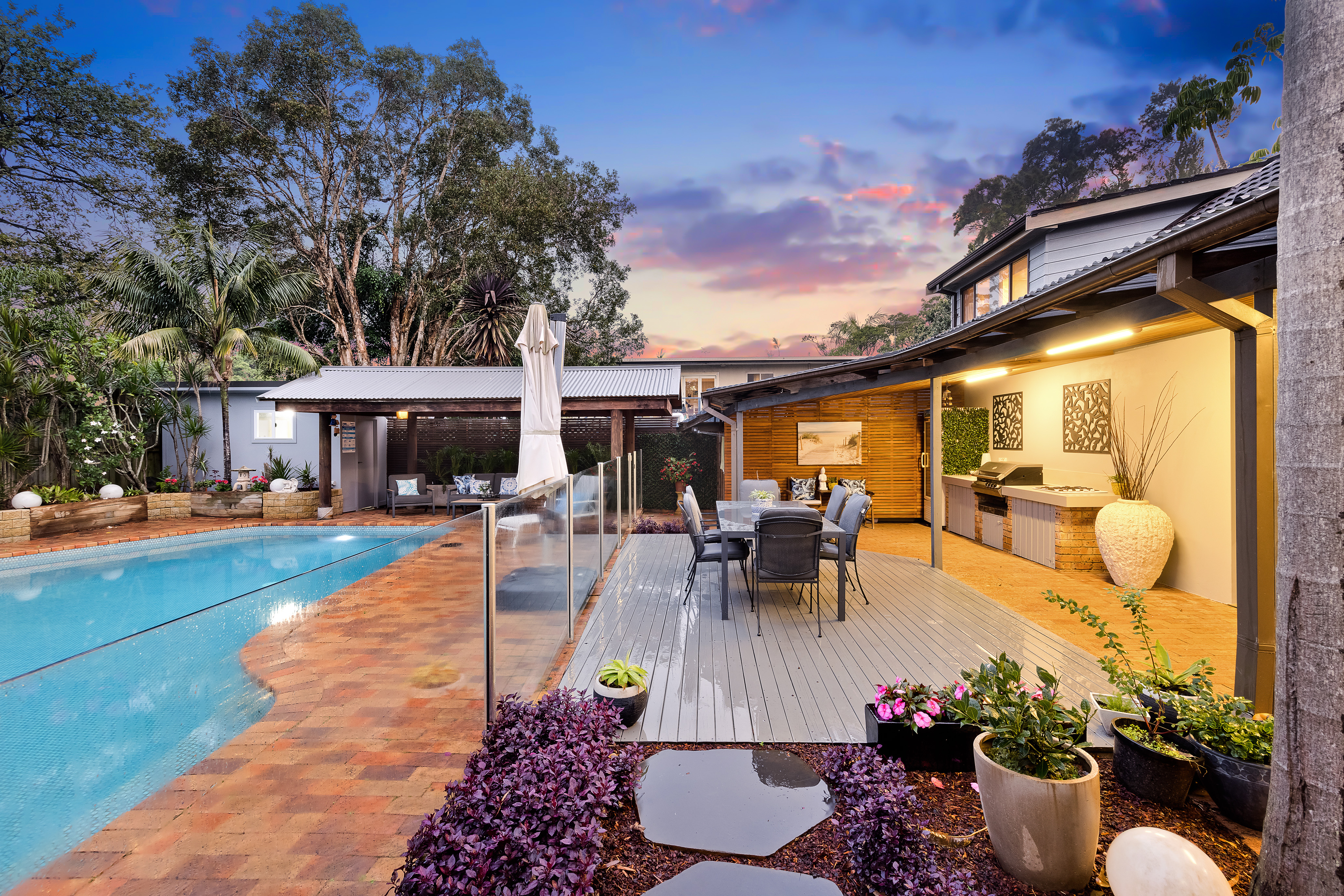 Entertaining is always a spectacular affair in this luxurious and versatile family residence that is nestled on a prime near 936sqm parcel of land with beautifully landscaped tropical gardens and a sparkling in-ground pool. Heaven for large or multi-generational families with multiple living areas and versatile options for dual family living, it is perfectly situated directly opposite Lionel Watts Reserve within 300m of shopping and eateries at the newly upgraded Glenrose Village and an eight minute stroll or quick pedal around the bike path to Wakehurst Public School.