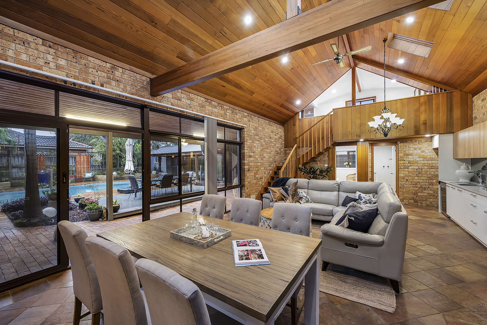 – Spectacular pavilion-like entertaining area wraps around the pool