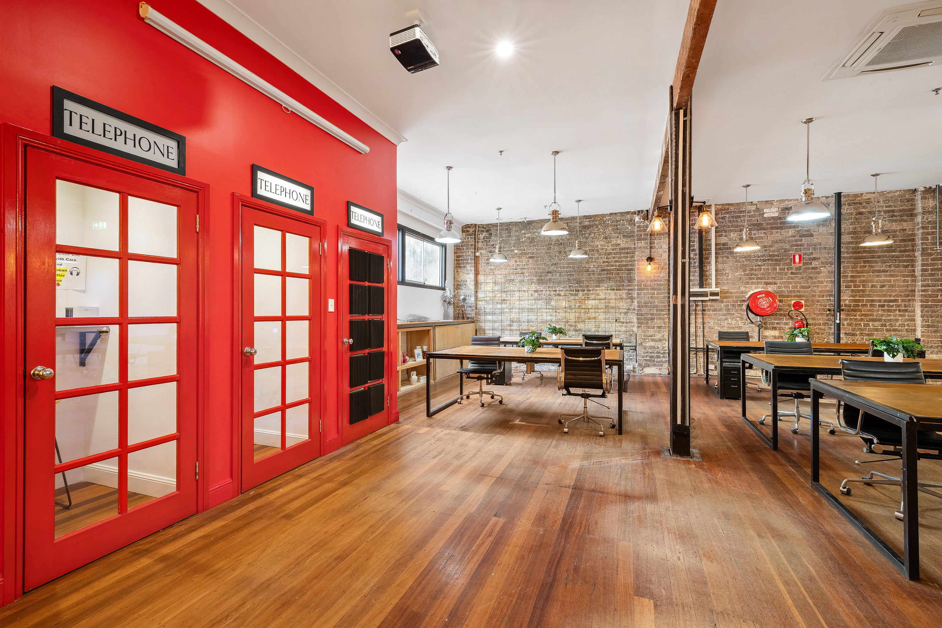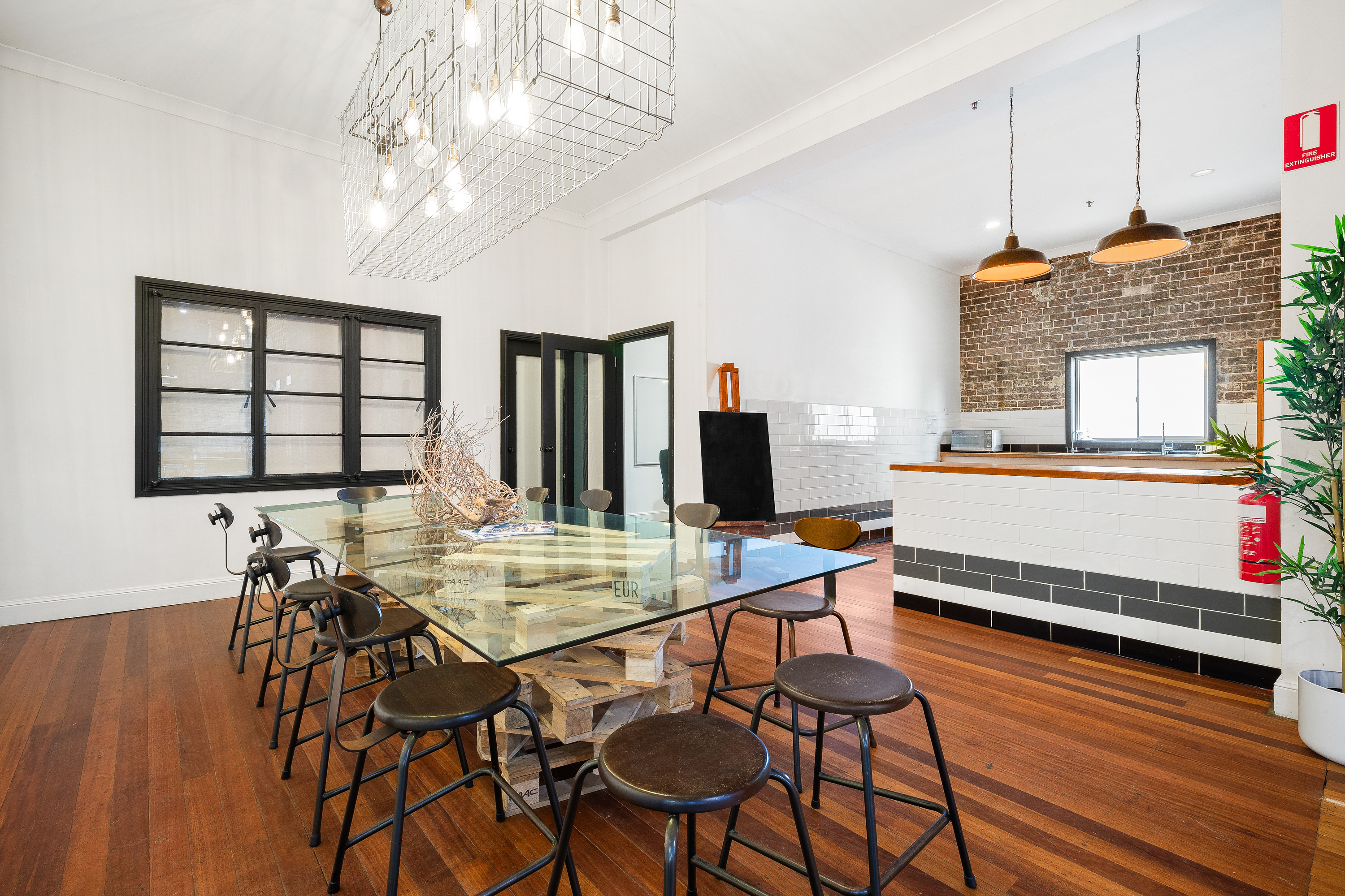 High ceilings allow for an airy atmosphere, while the large windows flood the space with natural light and offer glimpses of the picturesque Manly streetscape. With its cozy nooks, meeting rooms and open-plan layout, this office is perfect for collaborative teams looking to work in a space that exudes personality and creativity.