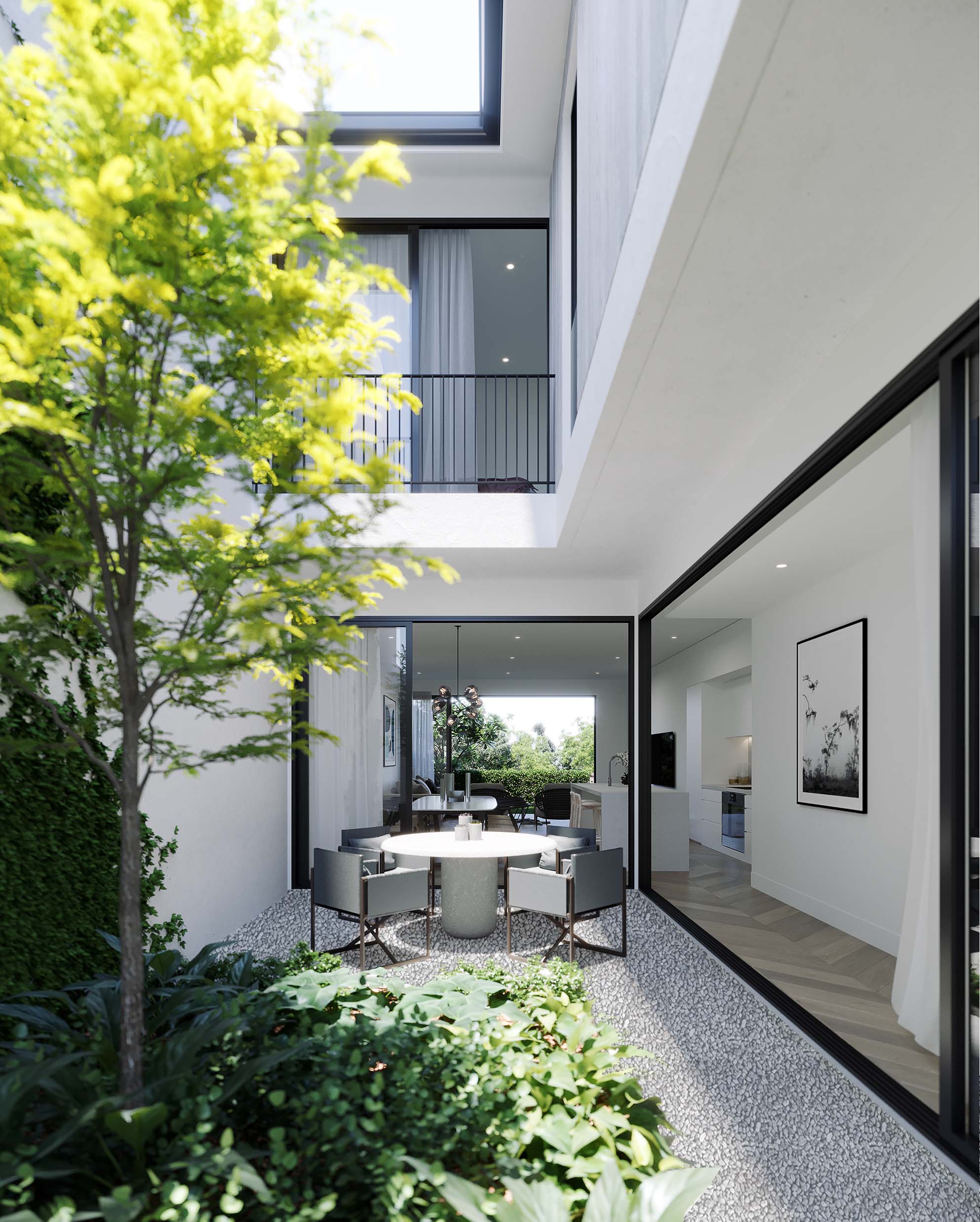 Soak up some sun on the balcony or terrace, or retreat to your private courtyard or garden at the back. With upgrades including an internal elevator and double garage, your new home offers a level of style and quality that will confidently stand the test of time. High ceilings promote an overall sense of airiness and light, while Herringbone wood floors and timber wall panelling complement generous open living and dining areas.
