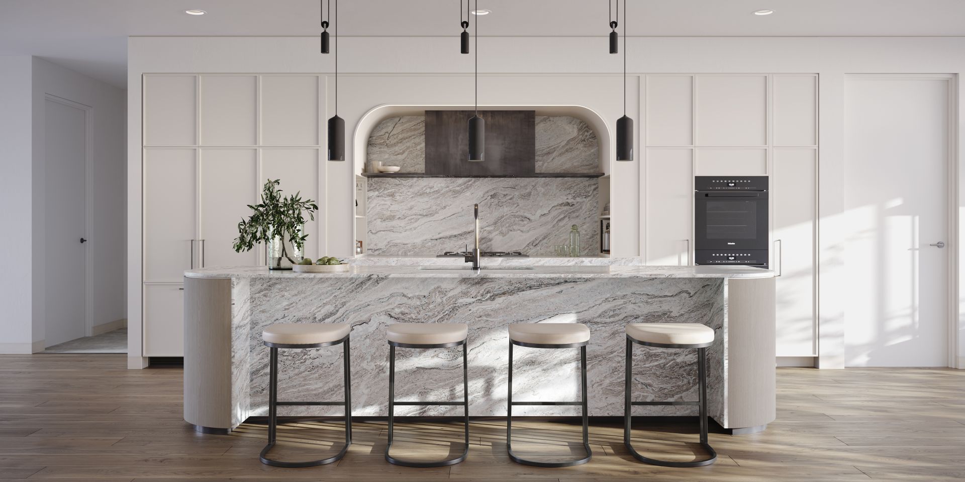 Throughout your home, you'll find stone quartzite features porcelain tiles and marble details, each carefully handpicked and paired to create interiors that are contemporary yet timeless.