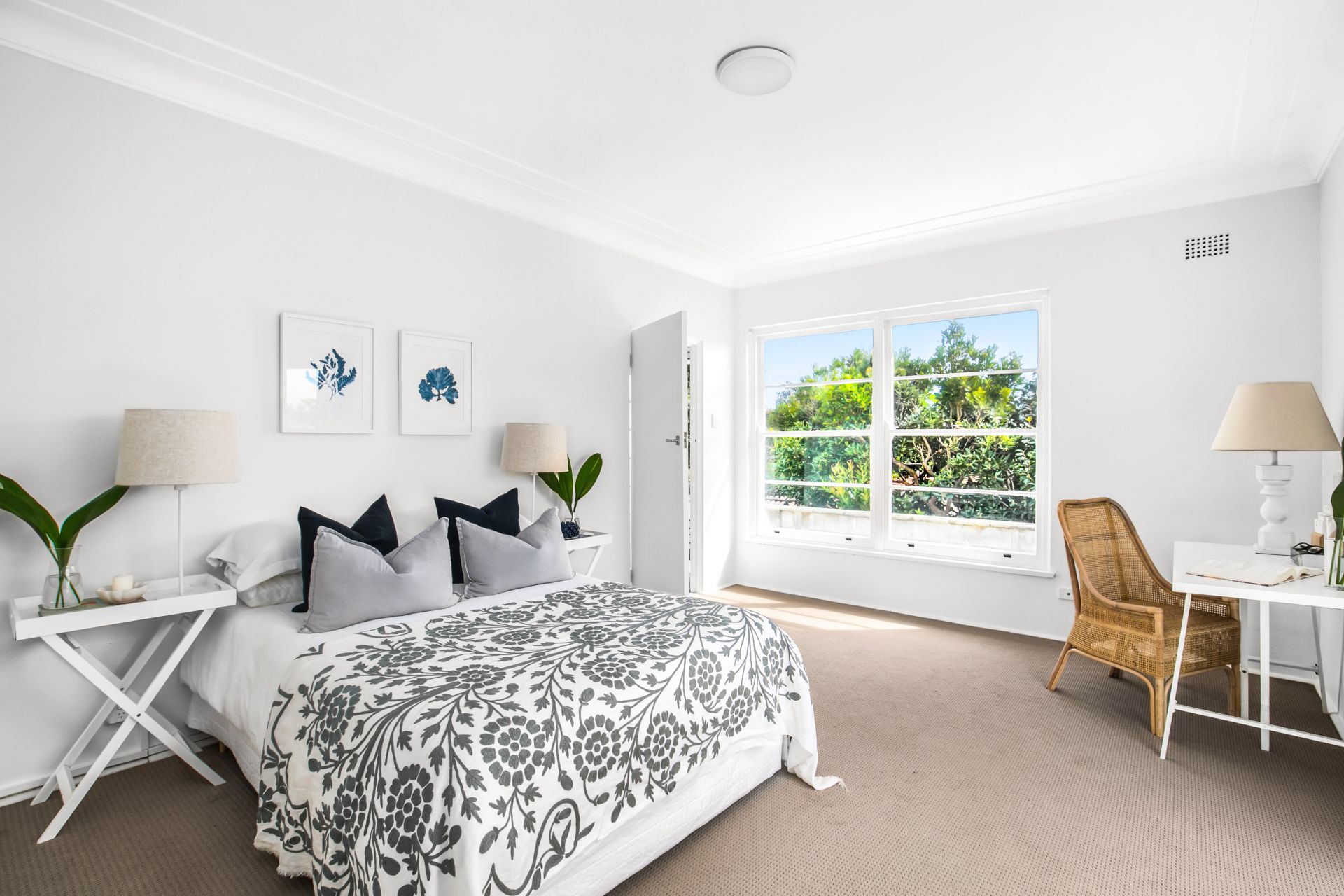 - Light-filled living area with period ornamental fireplace
