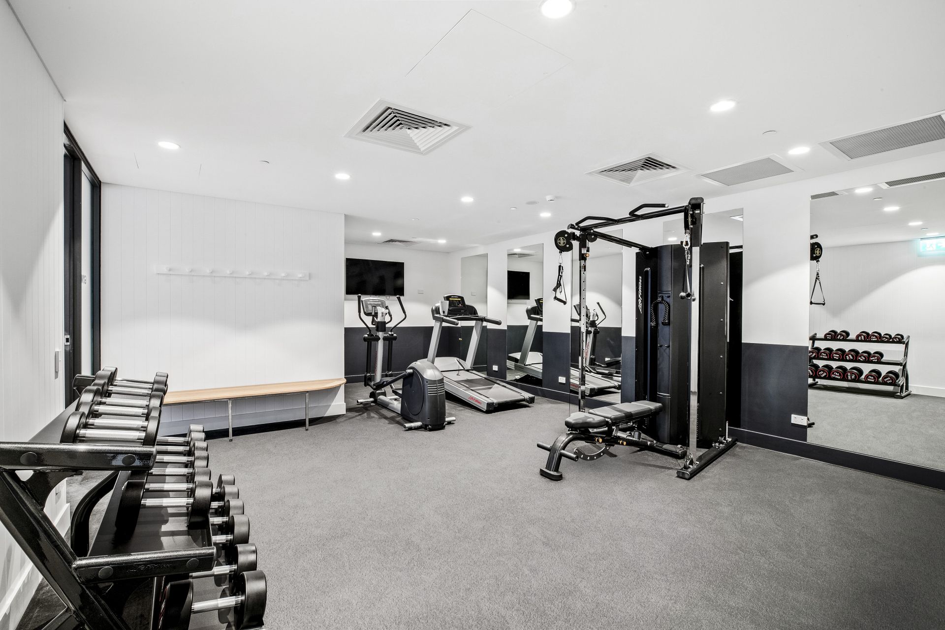 - Fully equipped gym, yoga area, and sauna