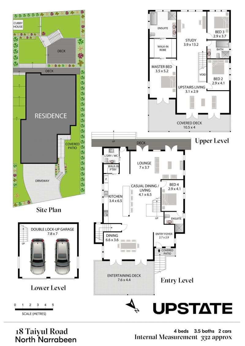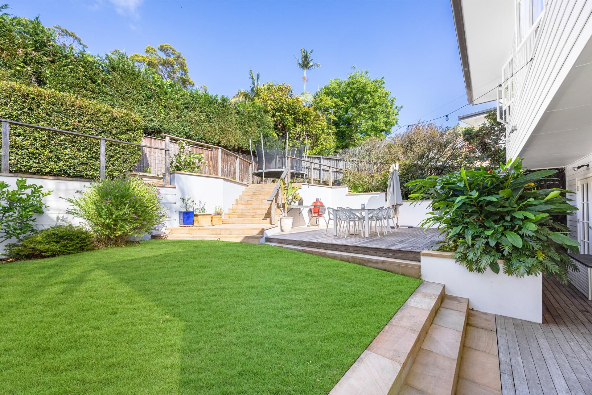 - Rear alfresco deck, child-friendly level lawns, cubby house, established gardens