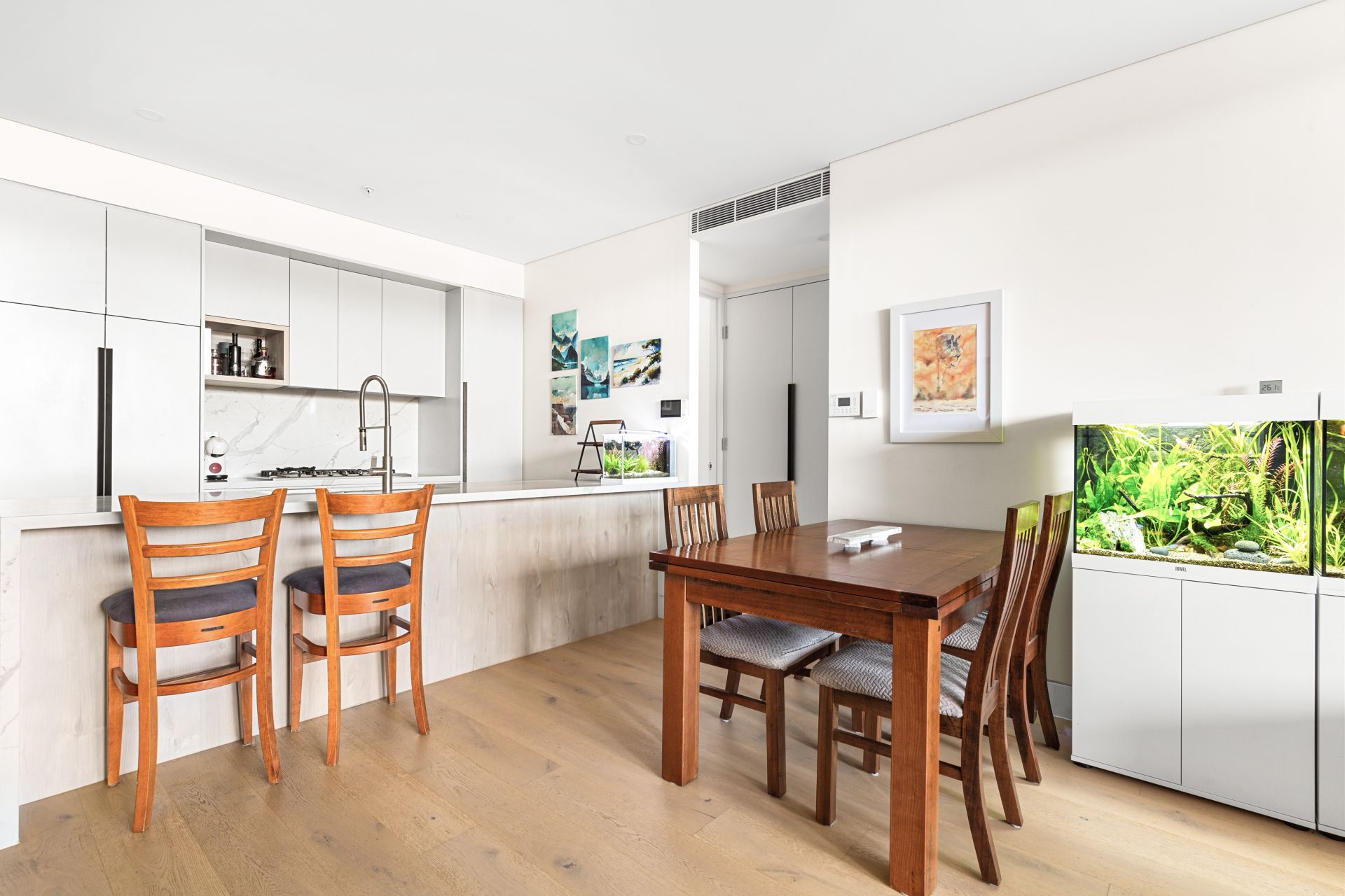 • High ceilings engineered oak flooring, ducted air conditioning, and LED lighting throughout.