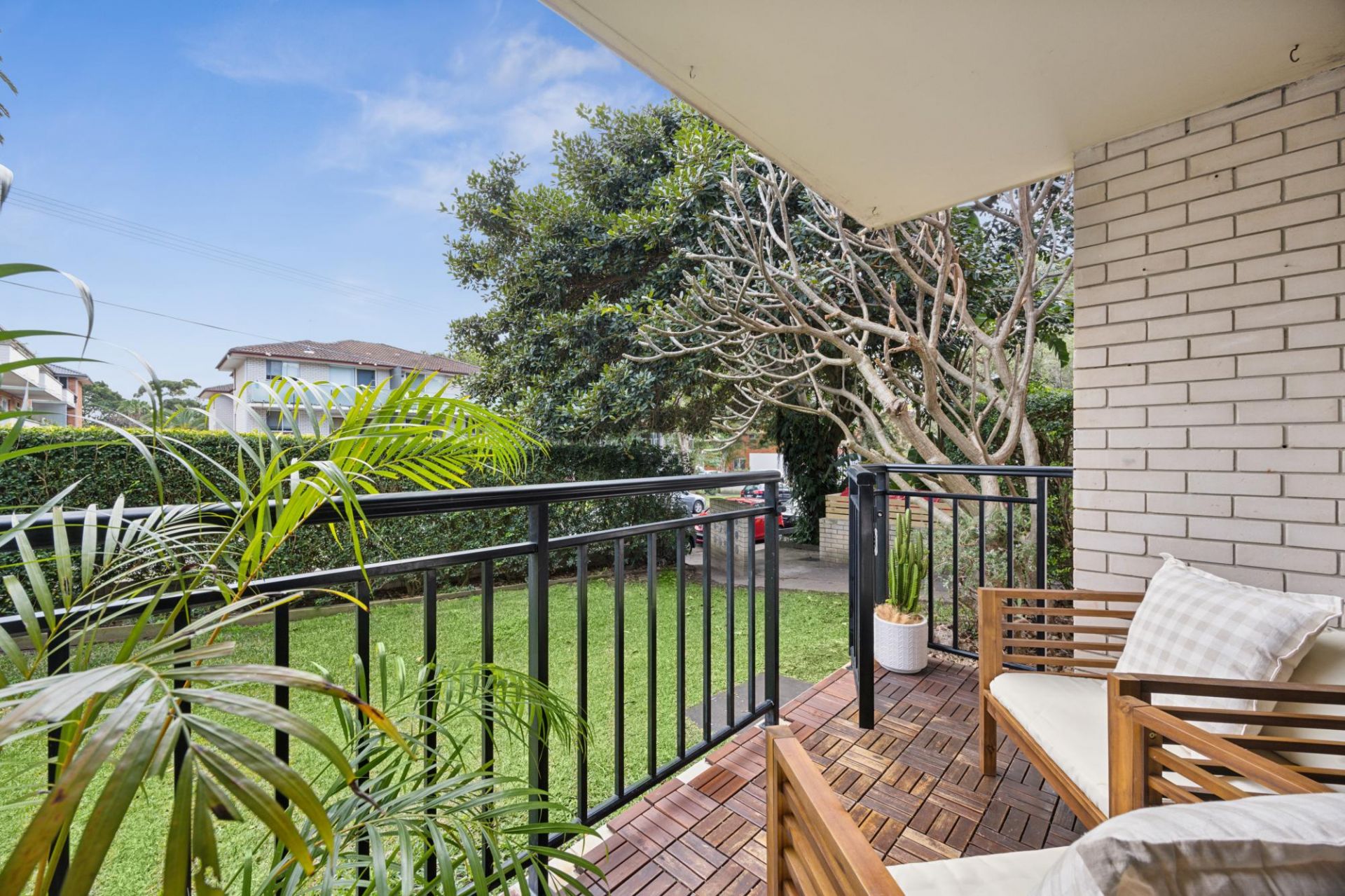 • The balcony enjoys gated access to the common lawn and garden
