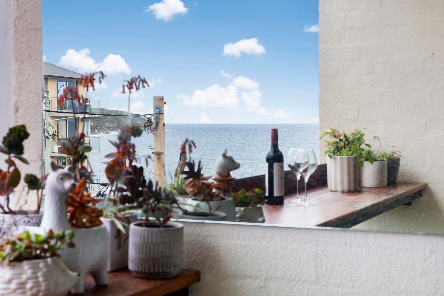 - Sunlit living area flows effortlessly onto a seaside balcony, complete with a built-in bar.