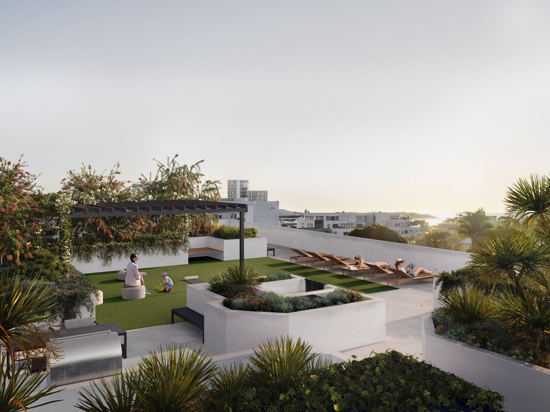 EXCLUSIVE FACILITIES: The rooftop provides panoramic ocean views, with barbecue facilities and a rooftop garden oasis. A dedicated gym and fitness studio offer tranquillity for mental and physical well-being.