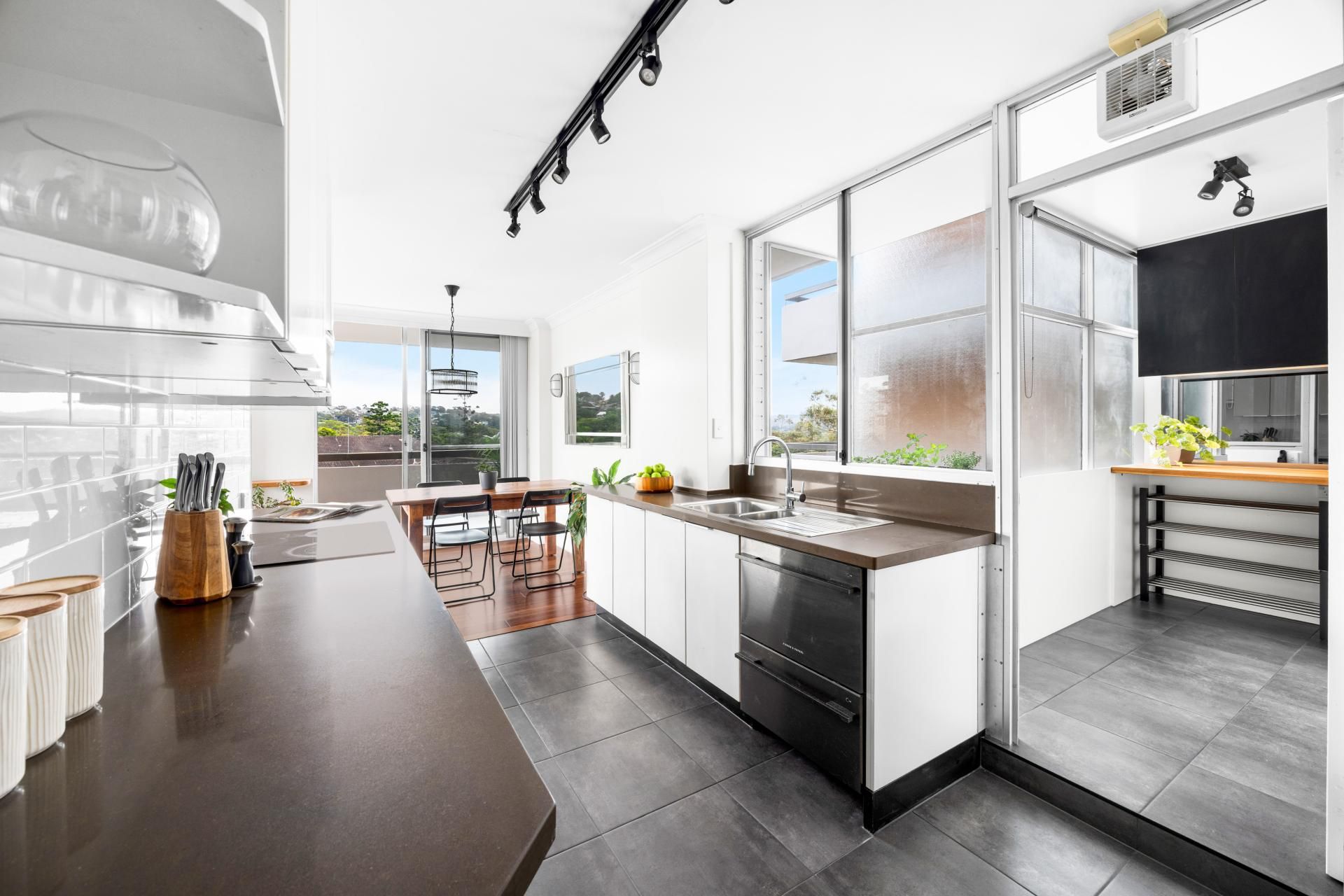 - Internal laundry with discrete fold-down washing lines on balcony