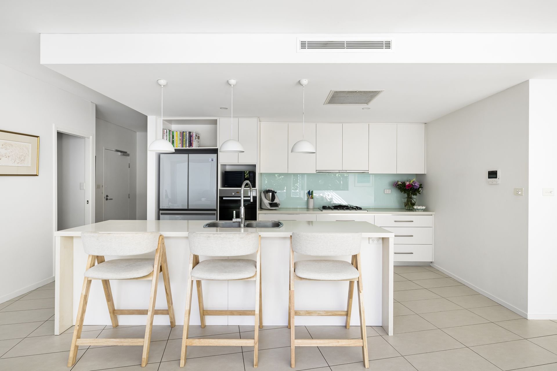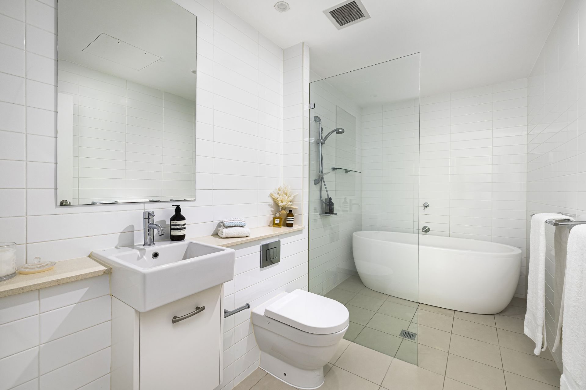 The king-sized master includes a private balcony, luxe ensuite with freestanding tub, while the second generously-sized bedroom offers a built-in robe and study nook. A separate home office with custom joinery adds extra flexibility.