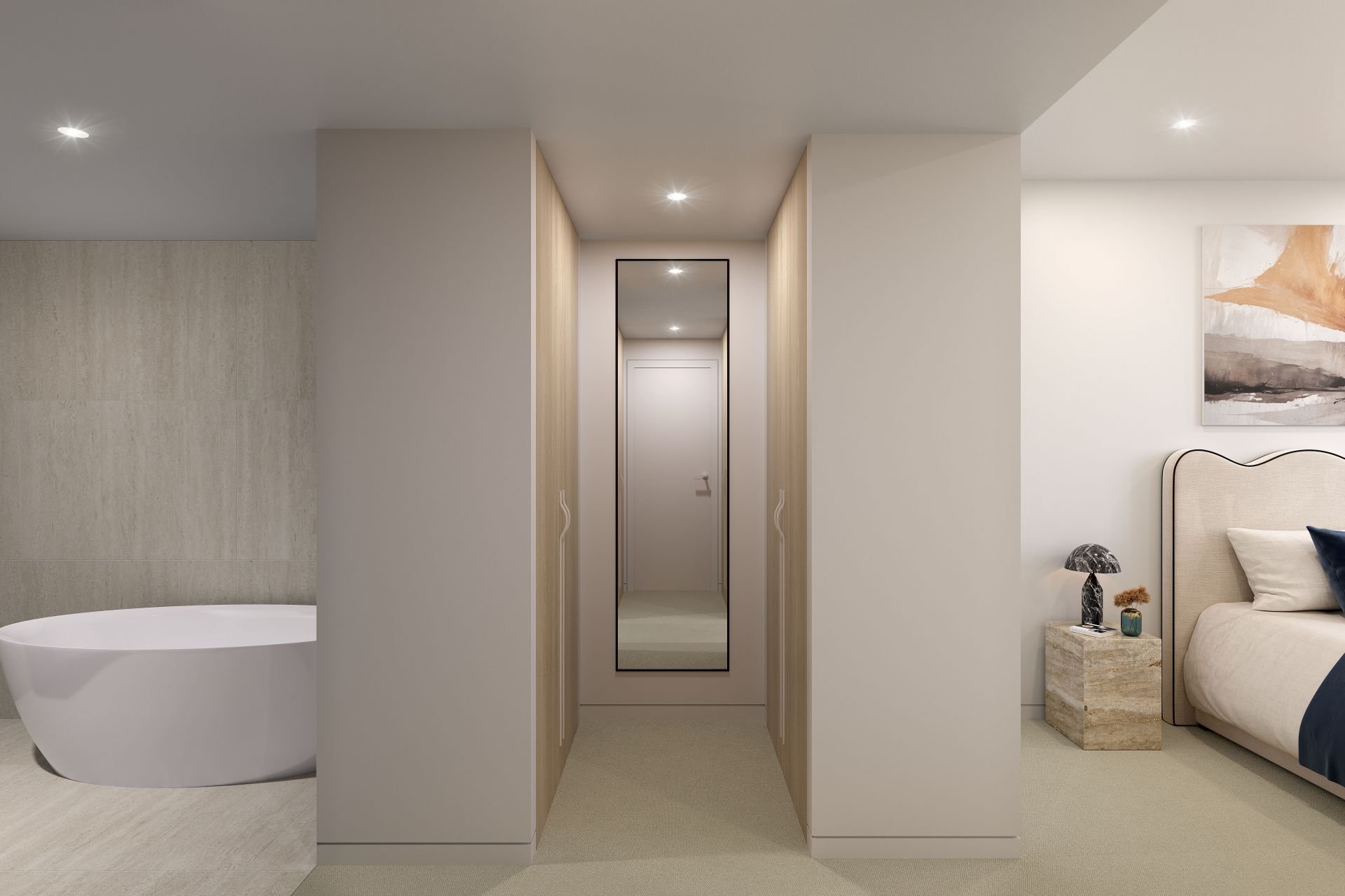 Master suite with a luxurious ensuite featuring stone vanity and designer fittings