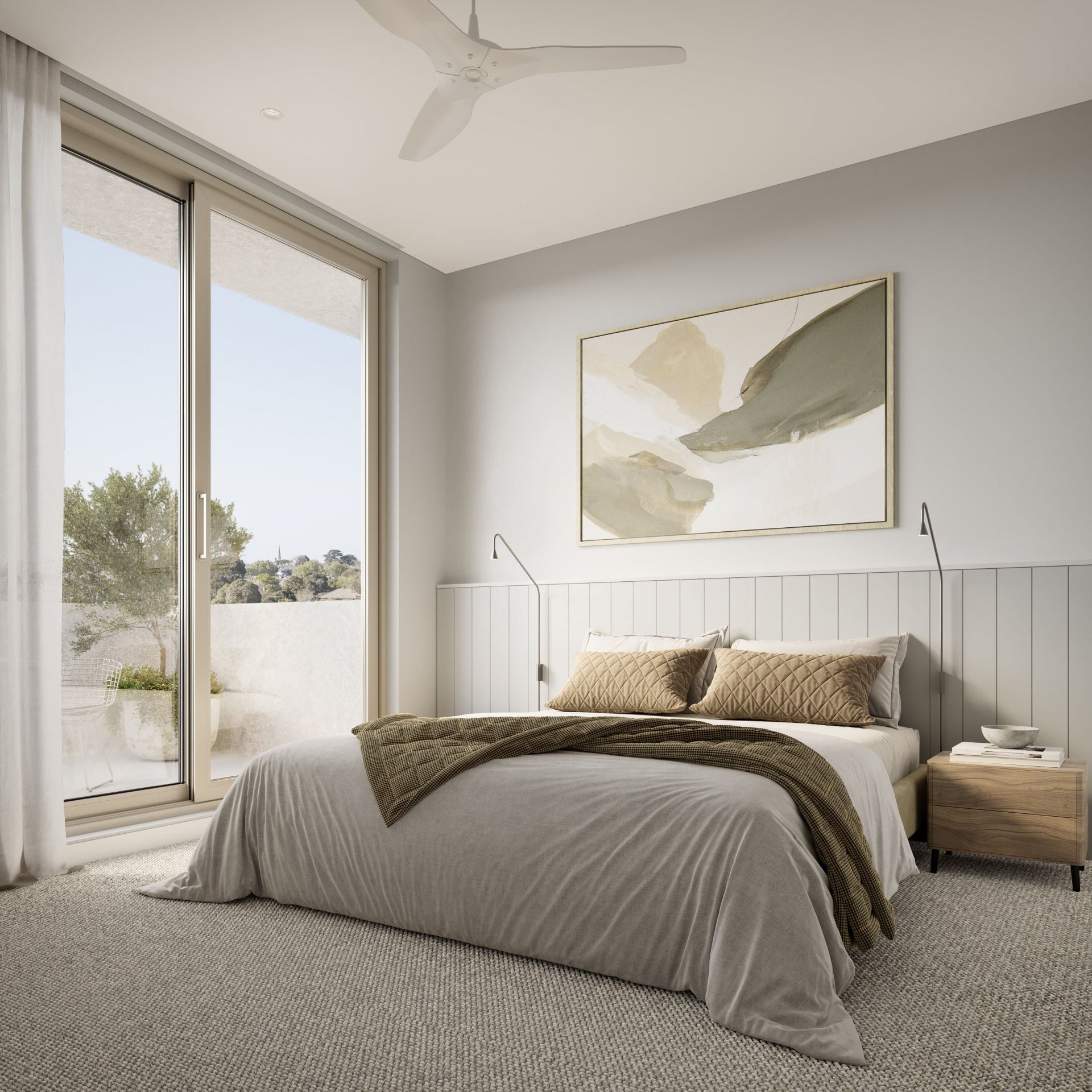 Designed by Alanna Smit Interiors, Casa Delmar exudes coastal opulence with its luxurious neutral palettes and intricate textures, and timber-look tiles or natural timber floors. The kitchens boast exquisite stone benchtops and splashbacks, cascading waterfall-edge island benches, and butler's pantries. Integrated appliances, Miele cooking technology, elegant tapware, and soft-closing drawers seamlessly blend with the coastal surroundings.