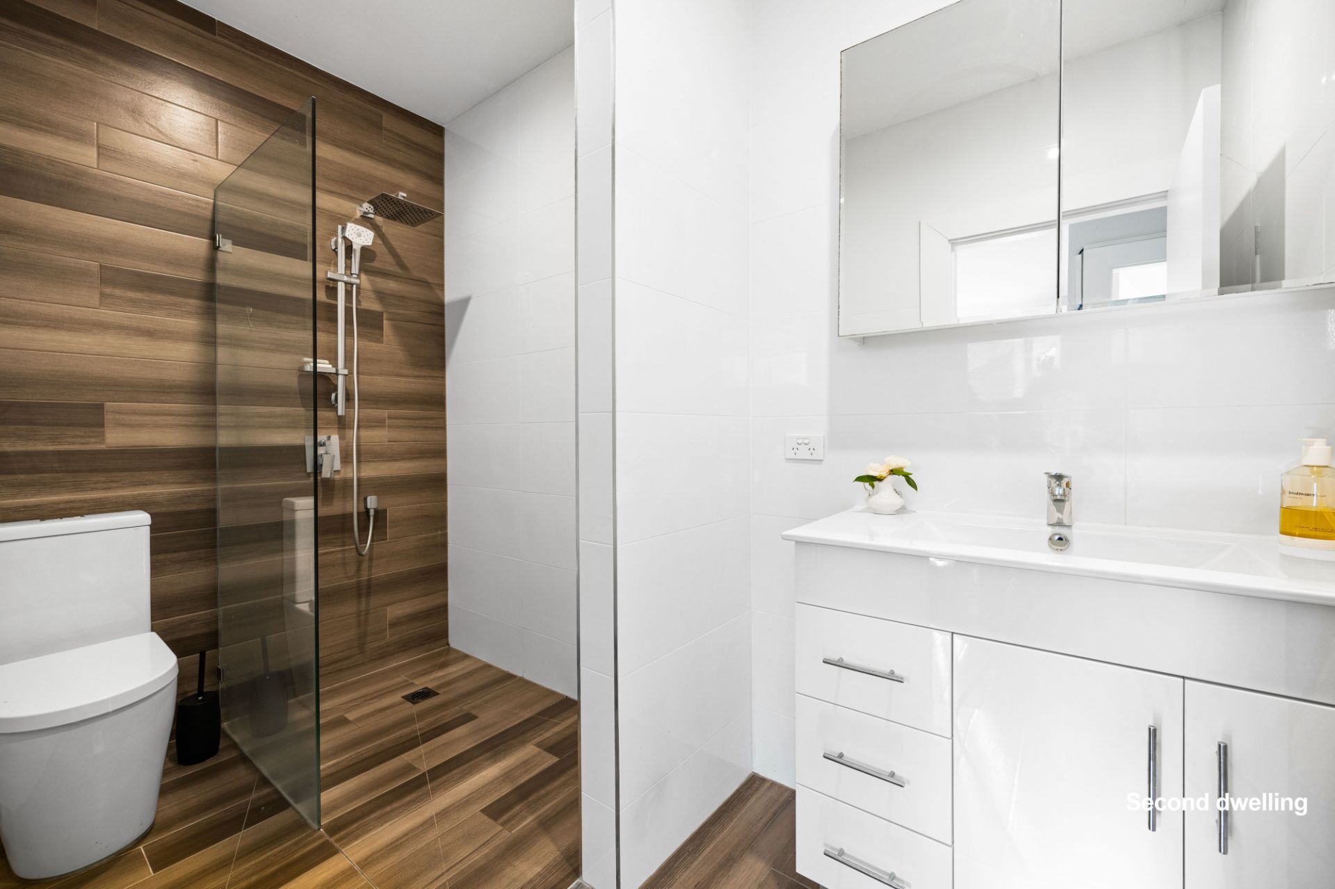 - Timber-look tiled flooring throughout