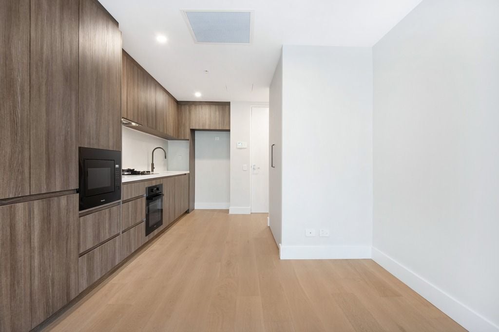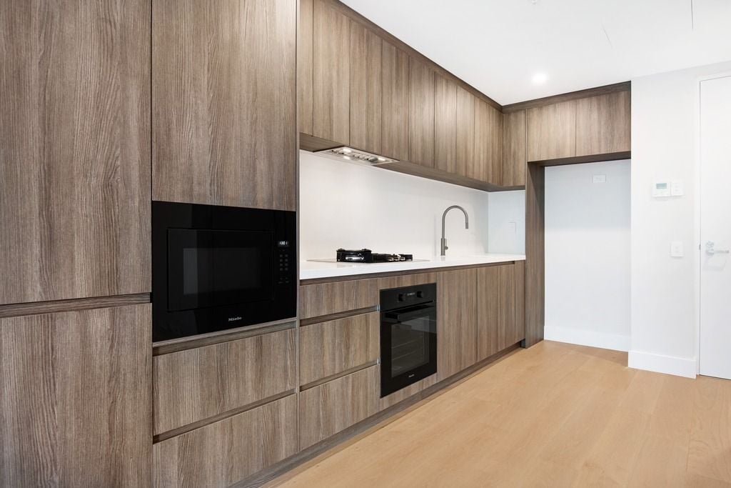 Thoughtfully crafted, the apartment features a spacious open-plan living and dining area that extends effortlessly to a generous balcony, your private retreat for soaking up the coastal air or entertaining with ease. Designed with attention to detail, the interiors showcase premium finishes including mood lighting, timber-grained floors, and custom joinery in a soft coastal palette of sandy tones and natural textures.