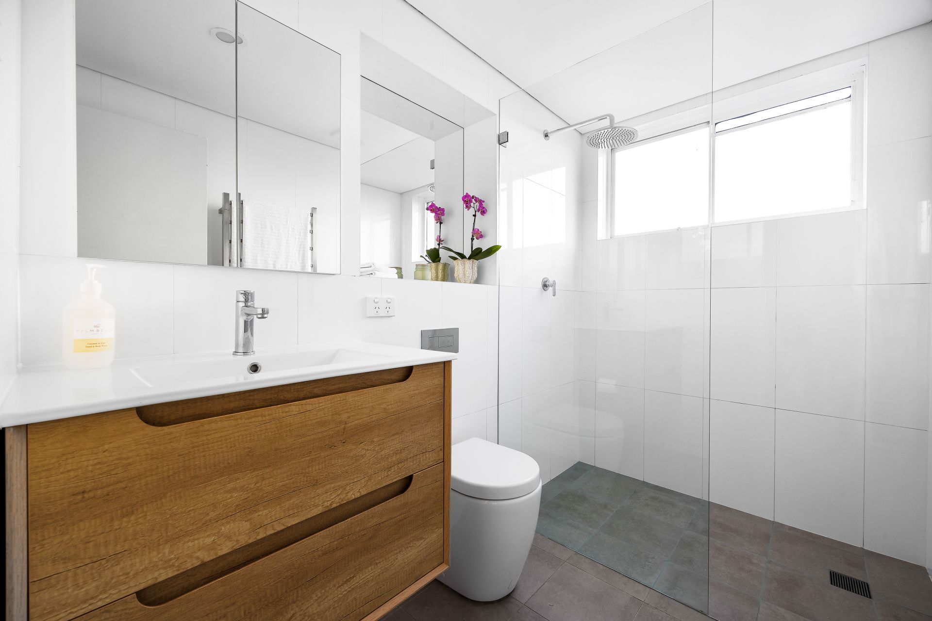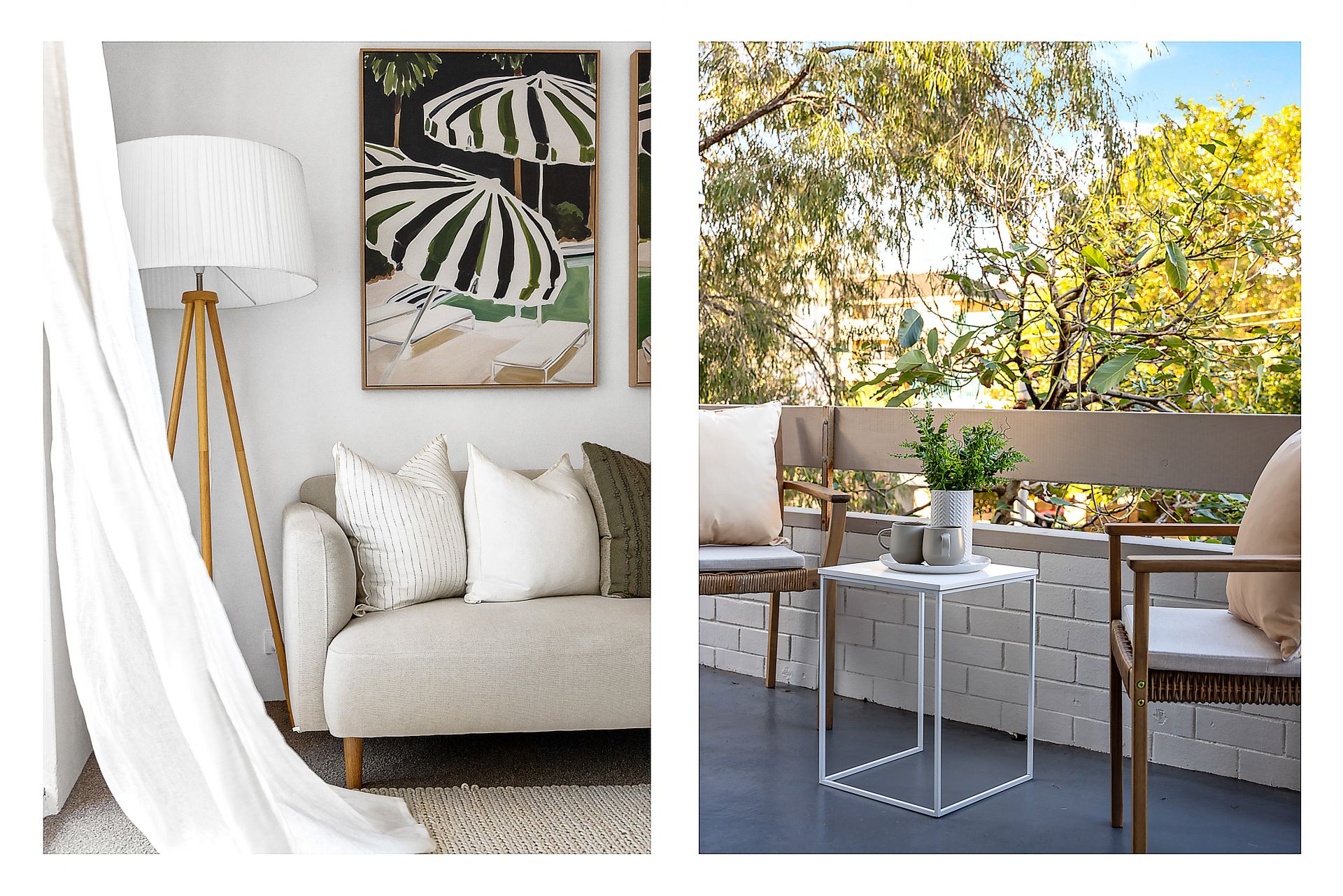 Inside, light-filled interiors feature two inviting bedrooms, a renovated bathroom, and an east-facing kitchen with gas cooking and Miele appliances. The open layout flows to the balcony, while an outdoor beach shower makes coming home after a swim or surf simple and stress-free.