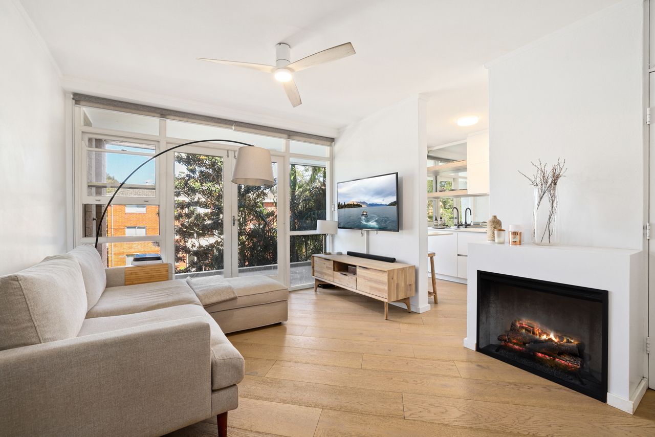 • Combined living space with defined dining area, featuring an electric fireplace and floor to ceiling French glass doors opening to a sundrenched oversized balcony overlooking a leafy and private outlook