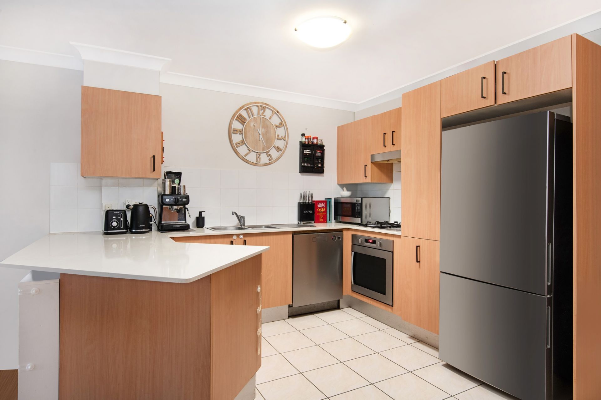 - Contemporary kitchen with oversized stone benchtop