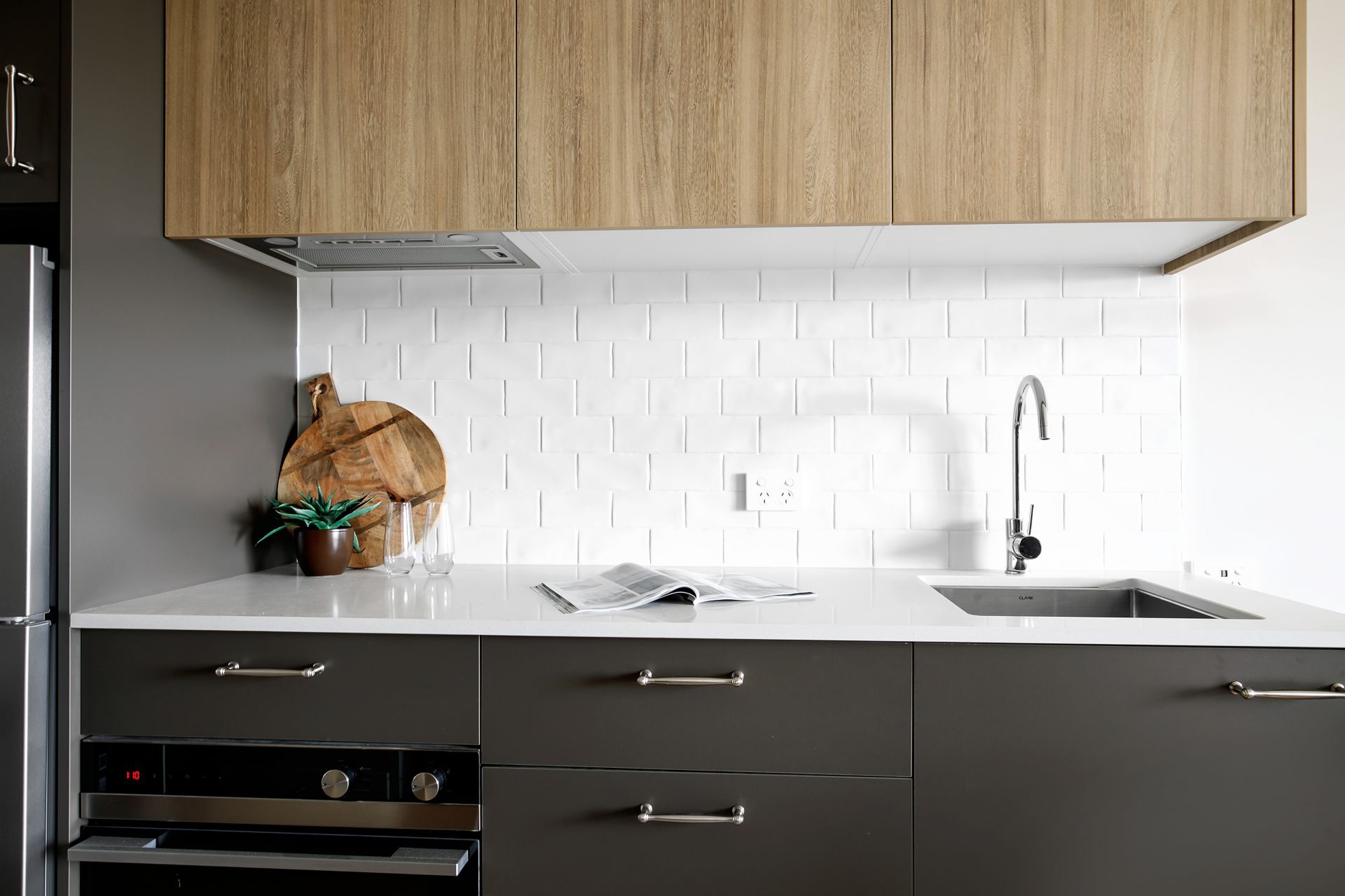- CaesarStone kitchens with s/steel fridges and integrated dishwashers